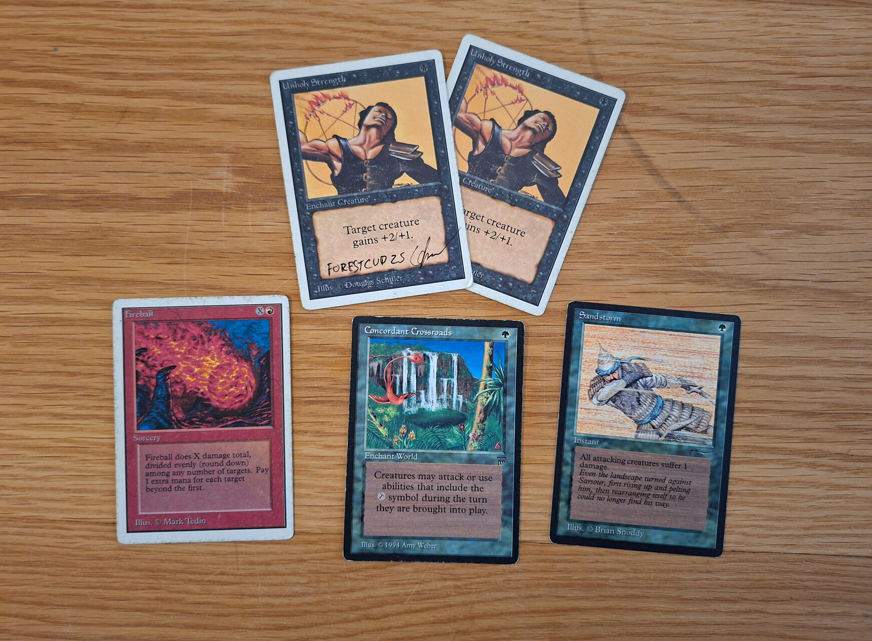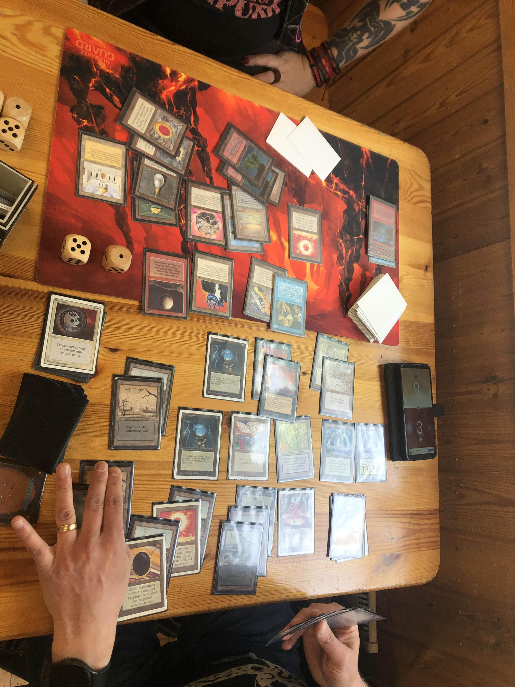 We (the undersigned, Amund, and Mar Kar) arrived at Gardermoen airport with plenty of time on Friday, June 13th—only to mess up everything that could possibly be messed up. Amund had booked an asinine ticket where he might - or might not - have a seat (also known as standby). I had gone through all of Gardermoen without actually checking in properly, which meant I didn’t check in on time, and Mar got pulled aside for a security check right before boarding. Whether by divine intervention or sheer luck, we all managed to board the plane in decent shape.Shortly after, we landed in Finland and made our way to the nearest train station, took two stops toward Helsinki, then caught the train to Tampere—our final destination. It was definitely time to hit the dining car for a beer or two. We were all impressed by the train system. Everything ran on time, and the trains were double-deckers with everything you could possibly need on board.The flight had taken its toll, and we arrived in Tampere around 18:00, just before the warm-up event. We made a mental note to travel on Thursday instead of Friday next year, as we realized the Finns’ warm-up events already begin Thursday evening. We missed the party and the sauna, but we’re considering arriving a day earlier next year. We dropped our bags at the hotel and headed straight to the event venue—a seriously cool spot focused on retro gaming, old consoles, and lots of gameplay.The warm-up event was Antti40, Antti’s own format with some unique rules:- You must build your deck using the Northern Paladins Alpha40 League framework.- All cards in your deck must be from the same set (Alpha, Beta, Unlimited, Revised, 4th+).- Cards work “as written.” That means, for example, Goblin Balloon Brigade in ABU gives all goblins flying for one red mana, unlike Revised where it only gives itself flying.- Otherwise, standard Alpha40 League rules apply: fake ante, and no mulligans except all-lander/no-lander.I brought my revised40forballers deck, slightly modified for the occasion. Amund hadn’t brought one, so he borrowed a mono-black from Antti, and Mar played a deck with questionable legality, in which he had acetone-wiped the black border off a Circle of Protection to pass it off as Unlimited instead of Beta. (Antti said it was okay, since it was technically a downgrade). And off we went.I met Amund in round one—his mono-black vs. my blue-black control. Close match, but Control Magic is pretty strong. In fact, it was strong enough that I cruised through the first three rounds with wins. Along the way I faced goblins and Alpha mono-green (sleeveless!). The fourth match was against another solid control-heavy deck that narrowly beat me after a long battle.Top 8 was called, and I was matched up against a guy who had already left, so I advanced on a bye. I won the semis, and faced off against the same goblin deck from earlier in the finals. Counterspells, Control Magic, and Hypnotic Specters were enough to bring the trophy home to Norway.The next day was the main event. Uber and/or other means got our delegation (5 from NOSMTG) to… a barn. A very nice barn, mind you. The event quickly escalated with Battering Rum, a custom 40% spirit sold at the bar and awarded to the top 8. Breakfast is the most important meal of the day, they say—so I toasted with two cowards who clearly thought it was a bit too early for spirits at 11 in the morning. Whether I used up all my luck the day before or the Battering Rum dulled all my senses (noone will ever know), the tournament went rather poorly for yours truly, finishing 2–4, though several of the games were close calls.The deck variety in the tournament was exceptional, and we discussed how Fountain of Youth was actually used in the local Finnish meta as an answer to Underworld Dreams and The Rack, among others. Fun to see local metagame differences when not everyone plays spike-style.The tournament was well organized, with pizza delivery after round 3 or 4. One Finnish guy squatted like Gollum, shirtless, devouring an entire pizza without utensils, while red chili sauce dripped from the corners of his mouth down his chest. There was something primal about this Finn—sitting there with takeaway pizza in his hands and what looked like blood running down his face, uttering something guttural in Finnish. I'll never know what he uttered, but the blood sacrifice seemed to work properly. Play resumed, and all was well.Top 8 was announced. David was the only Norwegian to make it in, but he was eliminated early. The whole tournament was awesome, well-run, and we were thoroughly satisfied with our trip to the neighboring country. Our only tip: travel on Thursday next year so you can fully experience the entire event.10/10, will go again.