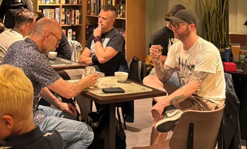 The departure was predictably delayed, so Vincent and Eyvind seized the opportunity to settle a Dunce League match. As usual, the stakes felt unnecessarily high. With the standing at 1–1 and the tenison-o-meter through the roof, the deciding game was ultimately conceded to the arriving train — logistics once again proving the stronger competitor.The train departed predictably slightly behind schedule, and hostilities resumed almost immediately. Eyvind’s upgraded flyers soon overwhelmed Vincent, and the remainder of the journey was spent trading cards, debating deck configurations, and squeezing matches onto tables clearly not designed for competitive cardboard warfare, or anything else for that matter.