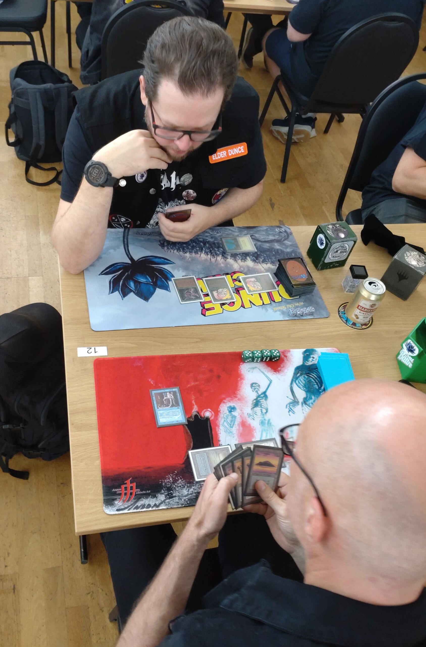 The tournament started off in the usual way for my part, with a 0-2 loss, and continued that way to the bitter end, all 0–2´s except one game 1-2, so I was in line for my second Dead Last patch (which I certainly got). Supreme Leader Adrian told to me to put the Moxes in my deck before the tournament, which I stubbornly didn’t do for some reason, and came to regret later on. Lesson being, never listen to any advice given. Was that the lesson? Yes, that was it.