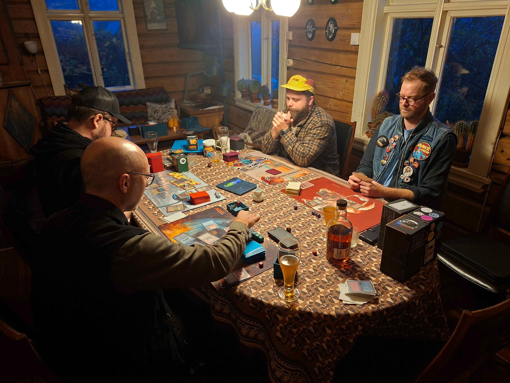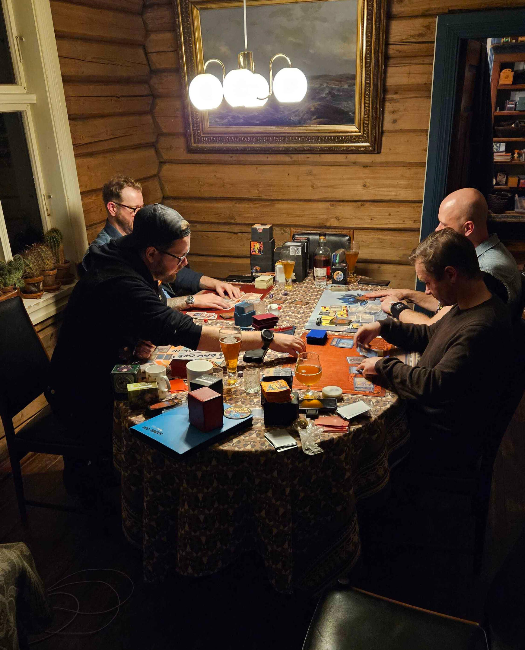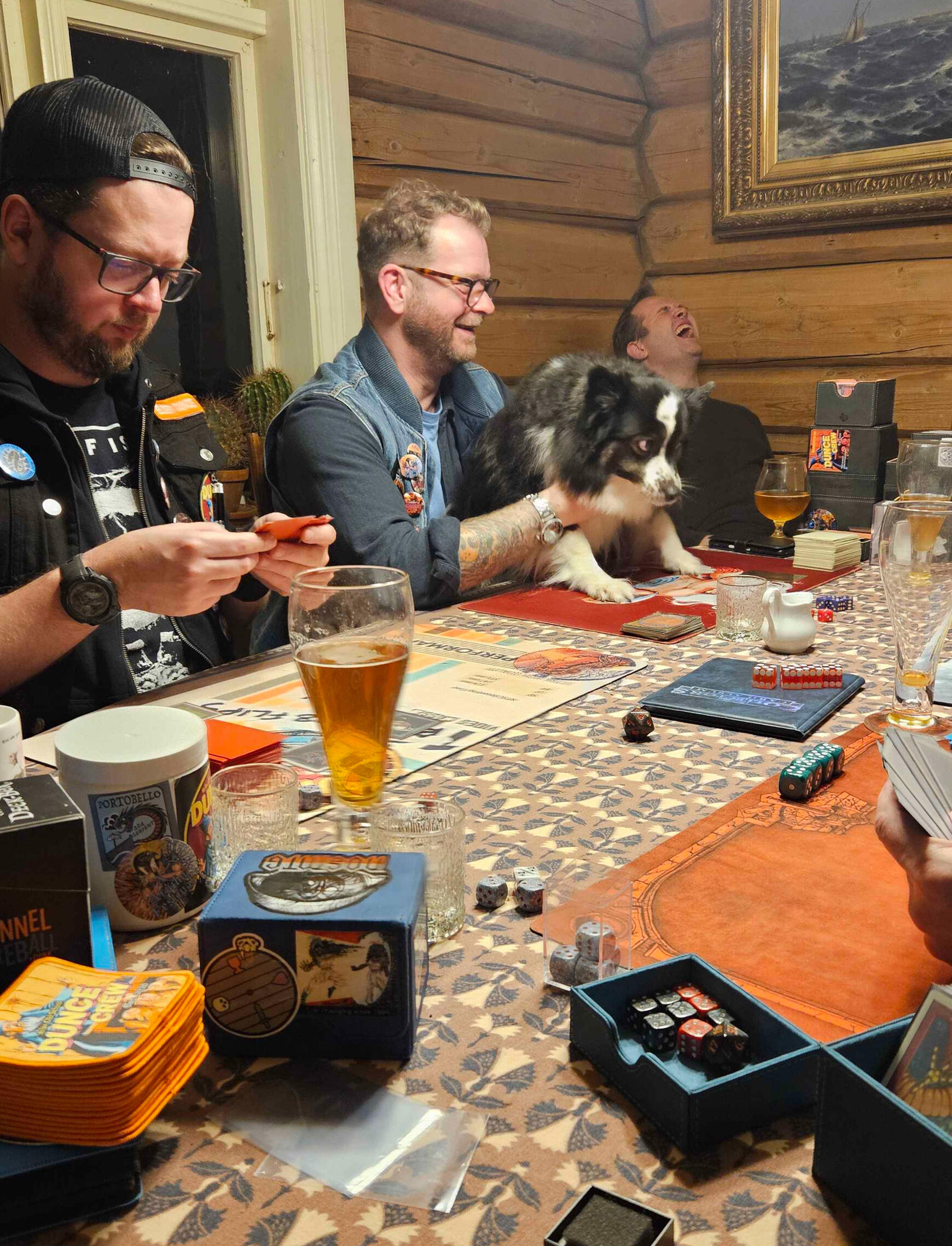 The tale of the Seven Who Stayed Indoors.Deep in the Norwegian mountains, where the air is fresh, the snow is deep, and the outside world is entirely optional, seven brave souls gathered for a weekend of Old School 93/94 (Ravenna Reprint), Dungeon Crawl Classics, and what scholars refer to as "questionable life choices." They came from both coasts—some from the west, some from the east, all bound by a common purpose: to shuffle, to roll, to consume, and to bicker about card games like proper Dunces.The weekend began, as all great sagas do, with shoveling snow. This was the only known instance of physical exertion, swiftly followed by the main event—the Old School Supreme Leader Trials. The battlefield was thick with green, red, and black spells, and many sighed dramatically over the presence of not one but two Mono Black decks, as though this were some great betrayal (which it objectively is according to several authorities on the subject). There was a break after a couple of hours for sausages and beer (for sustenance, of course), and after the dust settled, Prospect-In-Chief Abel seized the Supreme Leader Trophy and Chain. But lo! In an act of surprising democracy (or perhaps just to annoy the previous Supreme Leader Adrian), he chose to share power with Vincent. This was met with the kind of grumbling that truly defines a successful leadership transition, as well as a highly dignified face slap contest between Adrian and Vincent.At the other end of the spectrum, Magnus finished last, but was entirely unbothered by this fact, while Sindre, by virtue of being the only candidate eligibe for the honour, was awarded the coveted Least Dunce Trophy, which was, presumably, some form of progress.Saturday dawned with a chorus of groaning, the unmistakable sound of people regretting their decisions, but nothing cures a delicate constitution quite like dice, danger and dog hairs. Thus, the group set forth on an excellent Dungeon Crawl Classics adventure called Sky ov Crimson Flame, led by Magnus, who wielded the great and terrible power of the Judge. Many a die was rolled, many a poor decision was made. Daniel acquired the fabled Necropants, which, it was widely agreed, did wonders for his rear view. Magnus the Second grew far too attached to some other related pieces of leather. Abel committed a grand and treacherous betrayal (as one does). And in the grand finale, Sindre’s character, Goonar, selflessly (or perhaps recklessly) hurled himself onto the Big Bad Boss atop a tower to ensure victory after a particularly lucky roll, thus achieving the greatest of gaming honours: a death so dramatic that everyone remembered it afterwards.At the end of it all, the cabin was still standing, the players had survived (if only barely) even though 14 characters were slain during the DCC session, and a great time was had. A success, then, by all accounts. And if some brain cells were lost along the way—well, that was simply the price of glory.Supreme Leader Trial Standings:1st: Abel - 12 points - New Supreme Leader